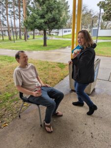 The Yuba College math club celebrated Pi Day on March 14, Pi Day is an annual celebration of the mathematical constant π = 3.14. For a donation to the math club, one could put a pie on the face of a Yuba College math professor. Pictured is a student who got to “pie” Dr. Mark Lydon!