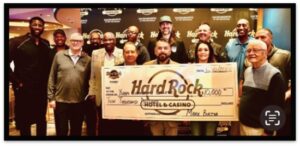 Yuba College men’s basketball coach Doug Cornelius joined Trustees and college leaders to receive a $10,000 donation from Hard Rock in recognition of the Kings’